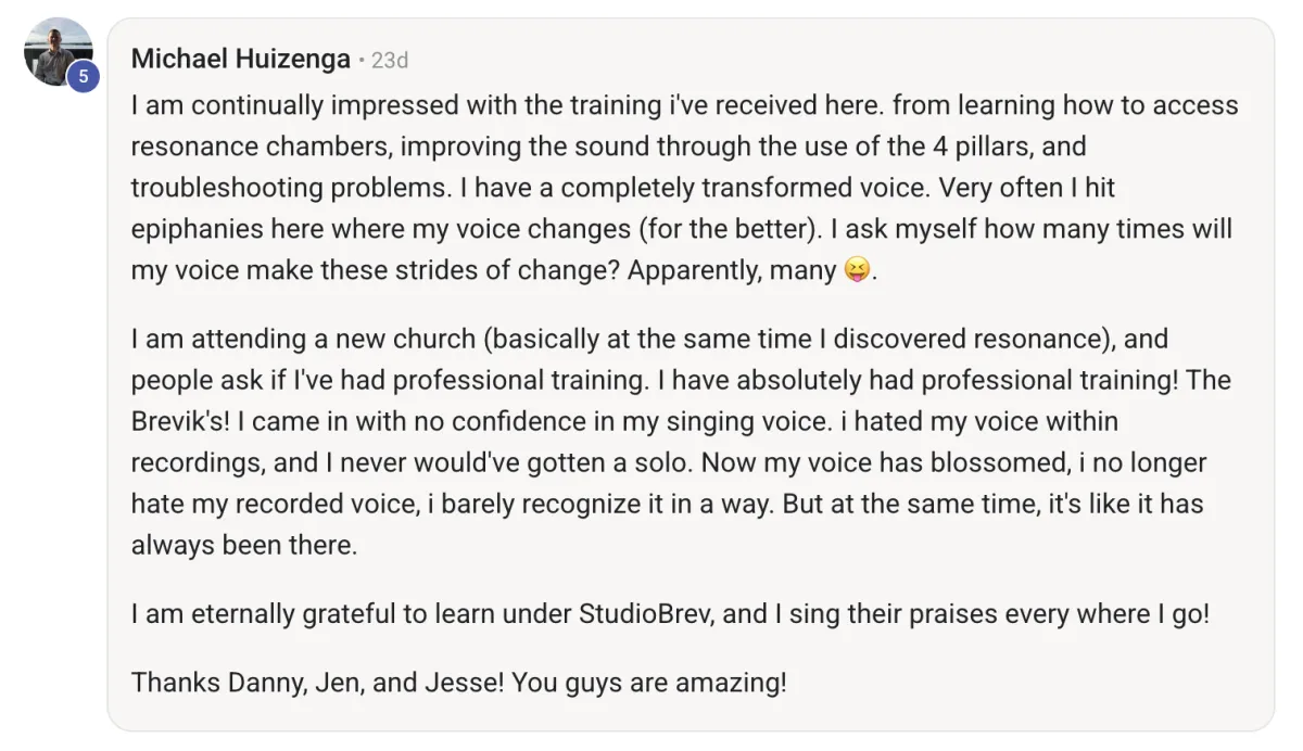 Before StudioBrev, Chet would lose his voice after almost every performance - now his stamina has improved dramatically!